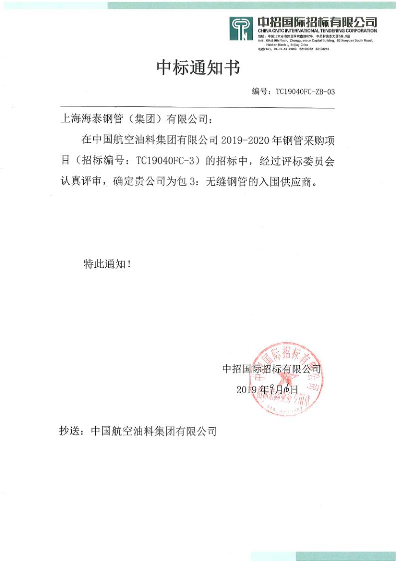 2019年7月我公司在參與中國航空油料集團有限公司《2019-2020年鋼管年度框架》招標中,依靠遍及全國的服務網絡和優質高性價比的產品,得到中航油的認可。獲得了北至黑龍江大慶、南至廣西南寧、西至青海西寧、東至浙江嘉興,共16個機場項目鋼管供應。入圍產品包括無縫鋼管和ERW焊管。我公司與中油飛鴿、中油瑞德有常年的合作關系,為中航油提供“一站式”服務,使客戶采購效率大幅提高。在中航油新疆公司烏魯木齊機場搶修任務中,我公司調集了貨物、運輸、防腐等全部服務資源,為客戶解決了Φ457mm和Φ114mm各一支的內外防腐管的需求。尤其是Φ114mm規格,為找到合適的3PE防腐廠,鋼管從上海庫汽運至煙臺庫,在煙臺做好3PE防腐后汽運至天津做內防腐,從天津汽運至北京,北京空運至烏魯木齊機場。在上海、煙臺、天津公司的接力服務下,圓滿完成客戶交給的任務,為搶修節省了時間。