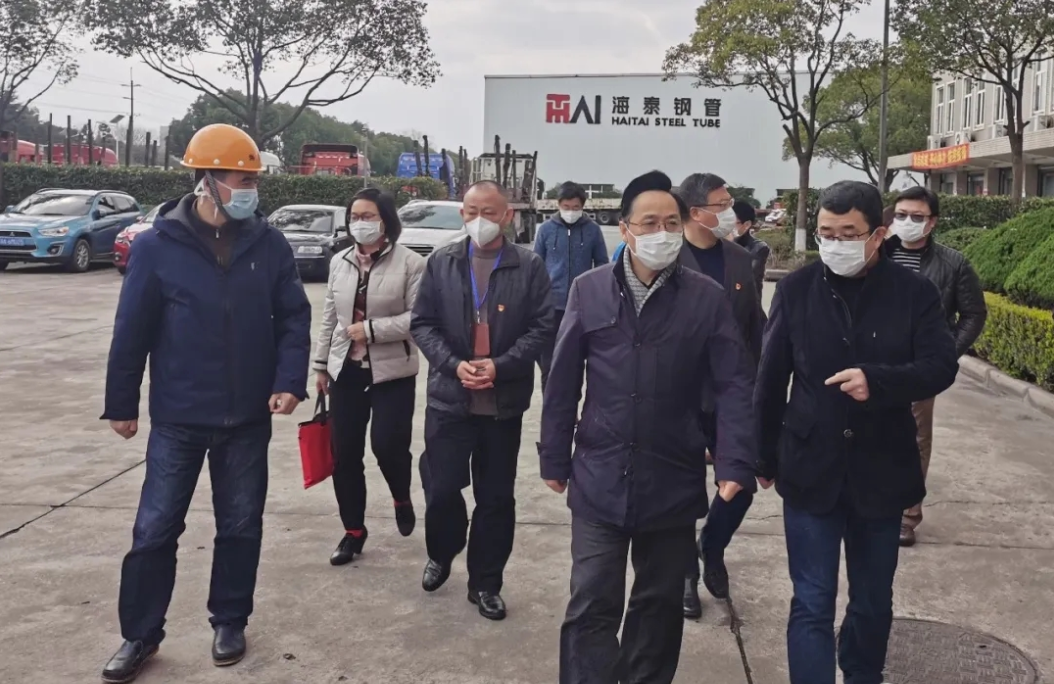 3月2日下午,鎮(zhèn)黨委書記王建,鎮(zhèn)黨委副書記、鎮(zhèn)長李強(qiáng),副鎮(zhèn)長施利平一行蒞臨上海海泰鋼管(集團(tuán))有限公司(下稱“海泰”)了解海泰復(fù)工復(fù)產(chǎn)和防疫工作開展情況,并為海泰送上口罩、消毒水、手套、額溫槍等防疫物資。