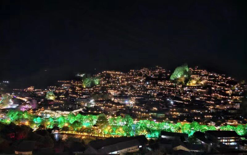 入夜,俯瞰西江,相繼亮起的萬家燈火勾勒出苗寨的倩影,恍若滿天繁星。古街商鋪也華燈初上,于頃刻間綻放出了令人震撼的盛況。