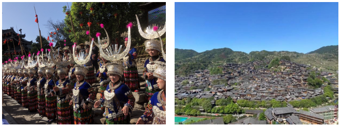通過上午的休整,大家期待滿滿地來到苗族侗族自治州的西江鎮,這里有全國最大的苗寨——西江千戶苗寨。苗寨中,可以選擇體驗傳統的少數民族服裝,也可以參觀苗族博物館熟悉少數民族的生活習慣并了解其形成的原因。