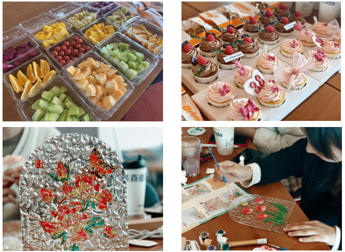 玻璃彩繪不僅讓大家體驗繪畫藝術的樂趣,同時也為忙碌的生活添加色彩。作畫間歇,大家也品嘗著美味下午茶。伴著點心、奶茶、果香和花香,大家愜意暢聊著各自的作品,享受著午后半日閑暇。