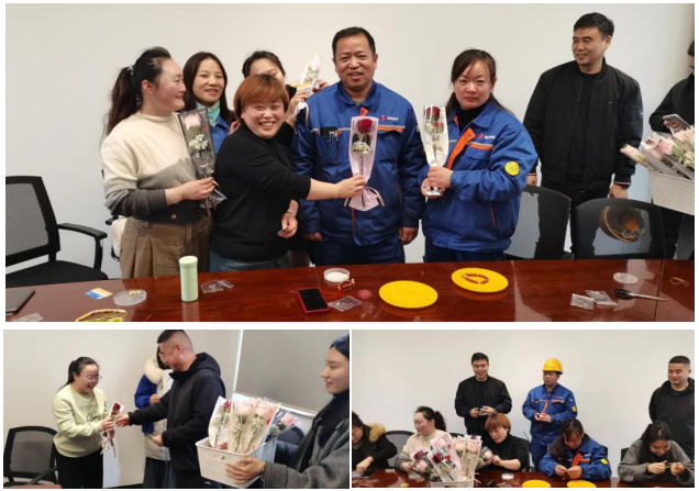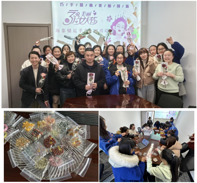 活動期間,海泰儲運總經理張學軍向全體女職工送上節日的祝福,總經理助理唐成和倉庫班長陳巨為員工們獻上鮮花和節日禮品。大家的手串作品也陸續完成,紛紛合影留念。