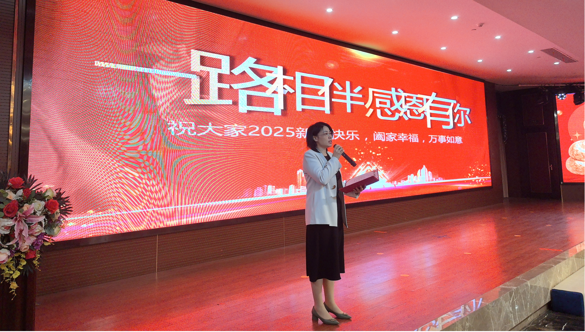 五彩斑斕的燈籠和精美的裝飾營造出了濃厚的節日氛圍。經過短暫的休息,海泰新春聯歡晚會正式開始,董事長丁勁松先生致新春賀詞,大家一同舉杯共飲,晚會在一片歡聲笑語中拉開了序幕。