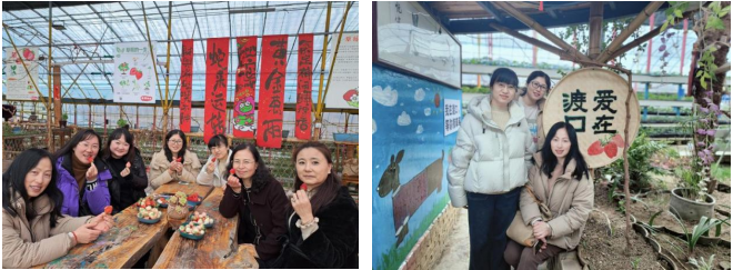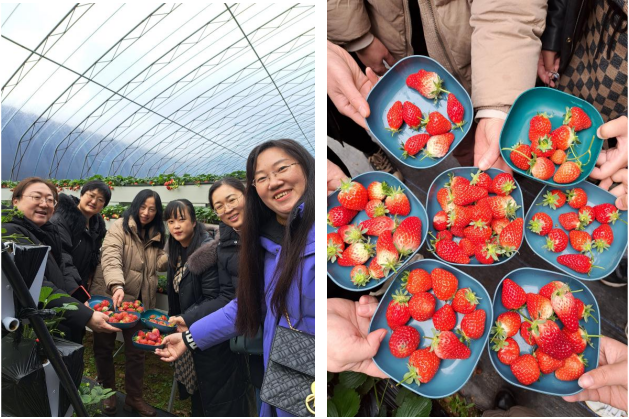 午餐過后,大家便來到了草莓園。一顆顆鮮紅欲滴的草莓掩映在綠葉間,散發著誘人的香氣。經過講解員的介紹,讓我們了解了草莓的起源、品種、種植技術以及營養價值等知識。大家手拿小盤,穿梭在田壟間,小心翼翼地邊采摘邊品嘗著可口的草莓,感受著田園生活的樂趣,臉上洋溢著幸福的笑容。大家對草莓有了更深入的了解,也感受到了現代農業科技的魅力。