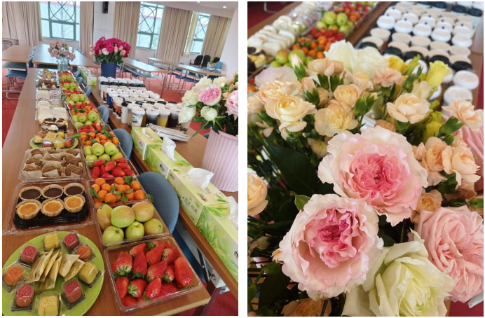 活動當日,公司的會議室搖身一變成了下午茶天地。桌上整齊擺放著奶茶、蛋糕、水果拼盤,還有一束束鮮花,紅玫瑰熱烈奔放,粉玫瑰清新淡雅,康乃馨溫馨美好,每一朵花都承載著公司對女員工們滿滿的祝福。